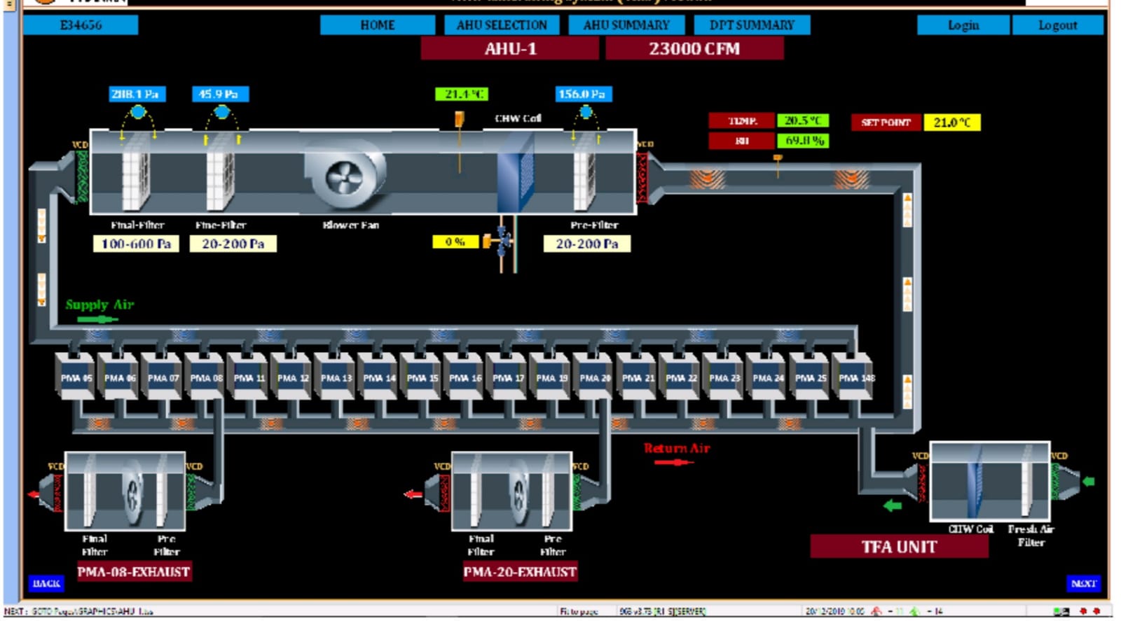 BMS with open architecture and Lonworks / Bacnet compatible DDCs Pharma Suite : 21 CFR Part 11 compliant validation software.